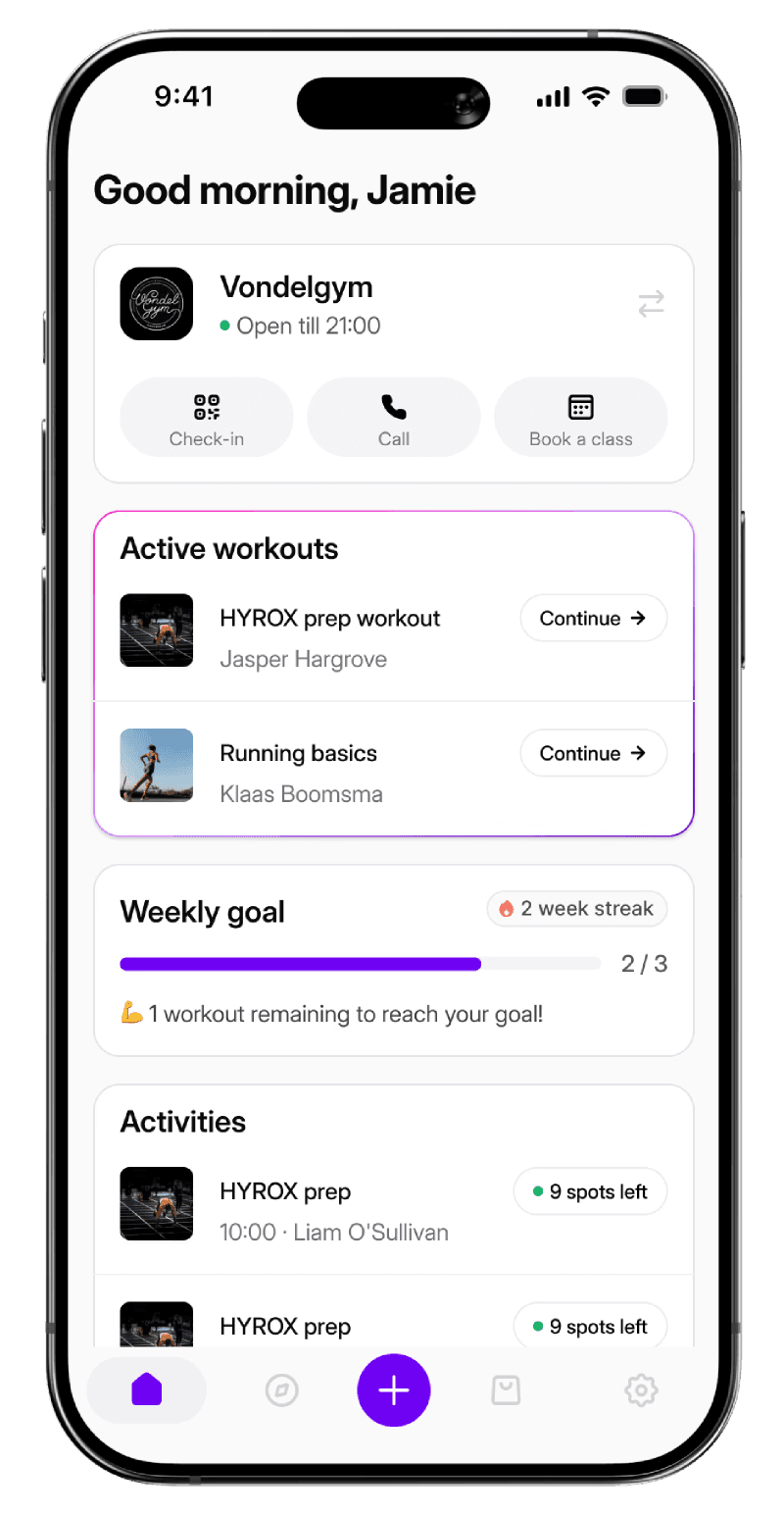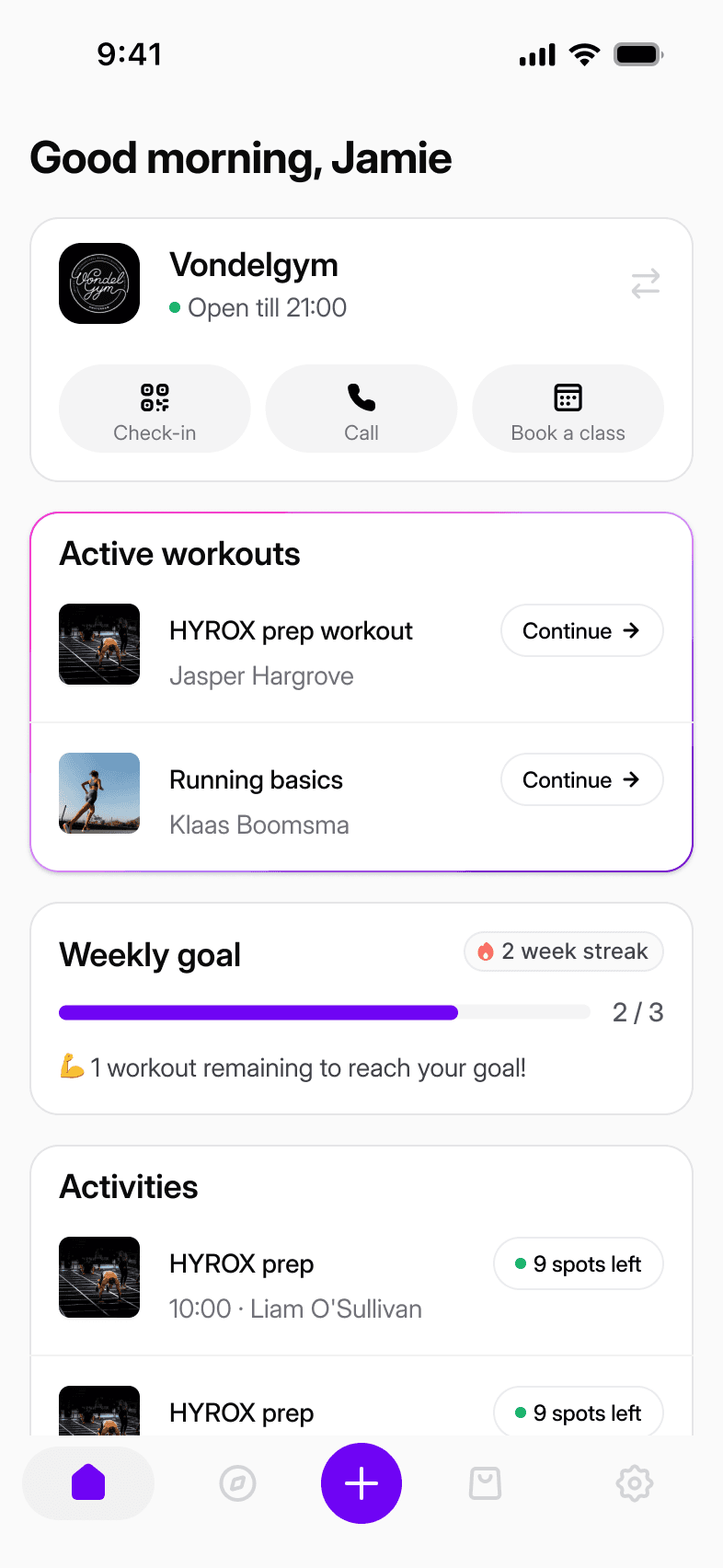 Our member app is designed to become the home of your community. Filled with features to make people more active.